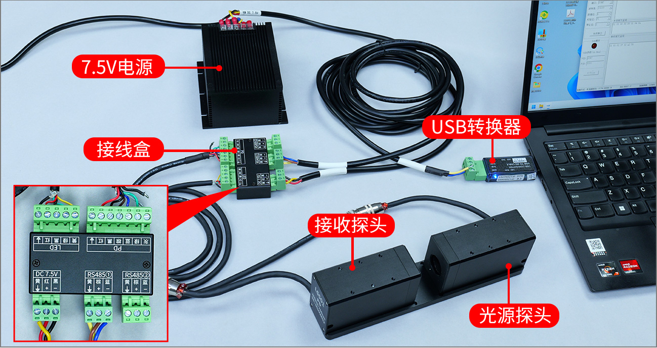 光源和探测器分体设计,配置固定板,安装方便灵活,只需连接6根线就可以完成连接。